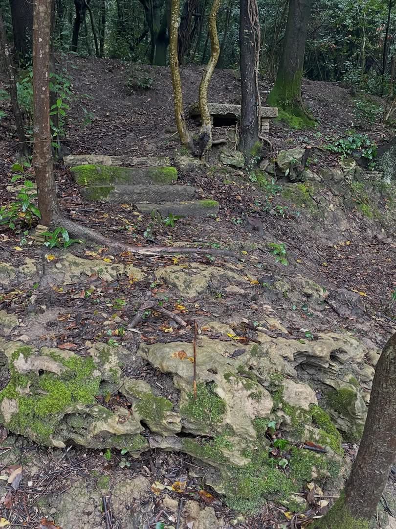 • La Fontana Ritrovata: Una struttura ornamentale riemersa dalla vegetazione infestante.