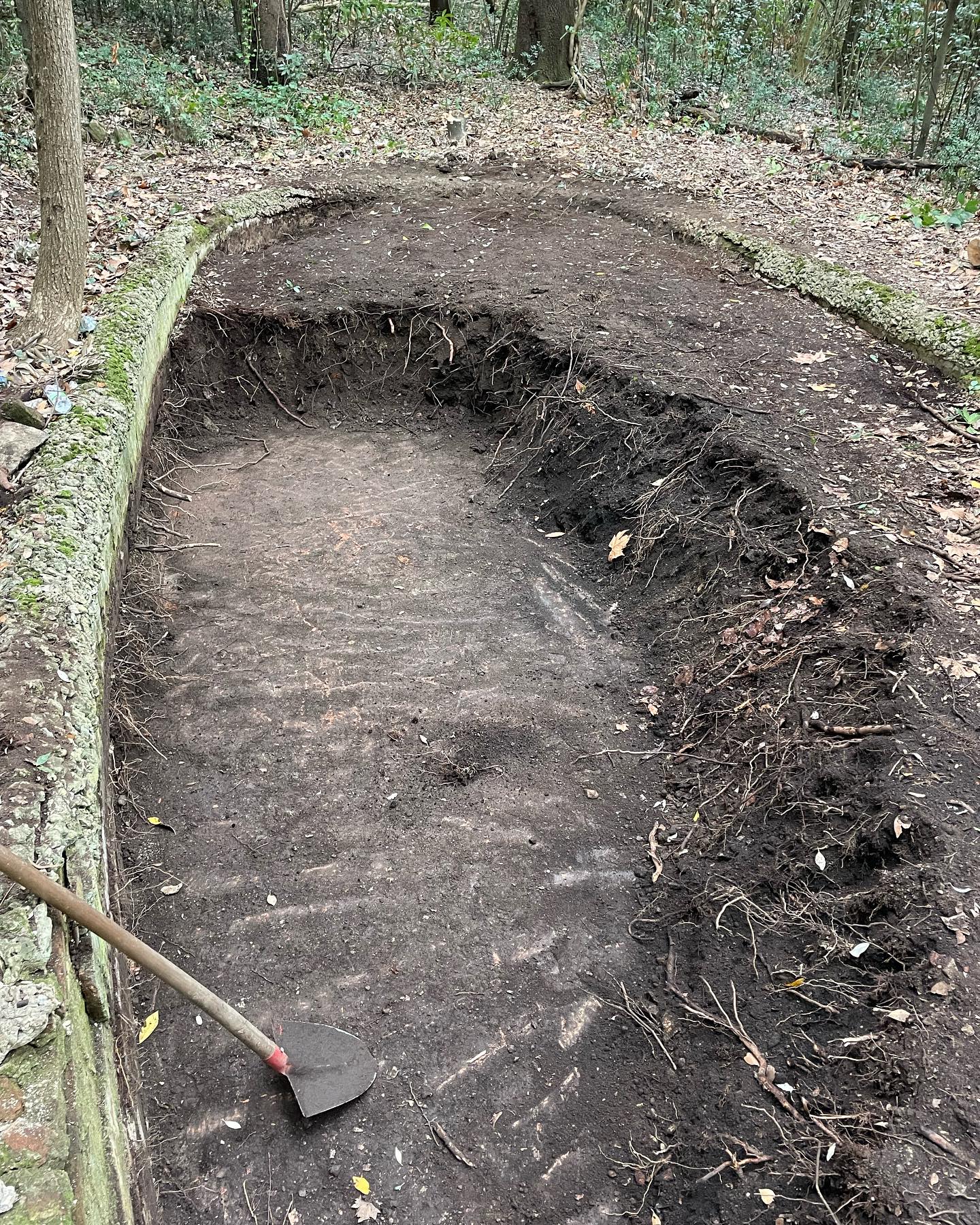 L'operazione principale è la pulizia di una grande vasca monumentale. Le sue dimensioni danno un'idea della mole di lavoro: 10,90 m di lunghezza per 4,10 m di larghezza, con un'altezza di quasi un metro (98 cm) dal pavimento in cotto. Ma la vera sfida sono i 70 cm di spessore di terra accumulata nel tempo che devono essere rimossi.