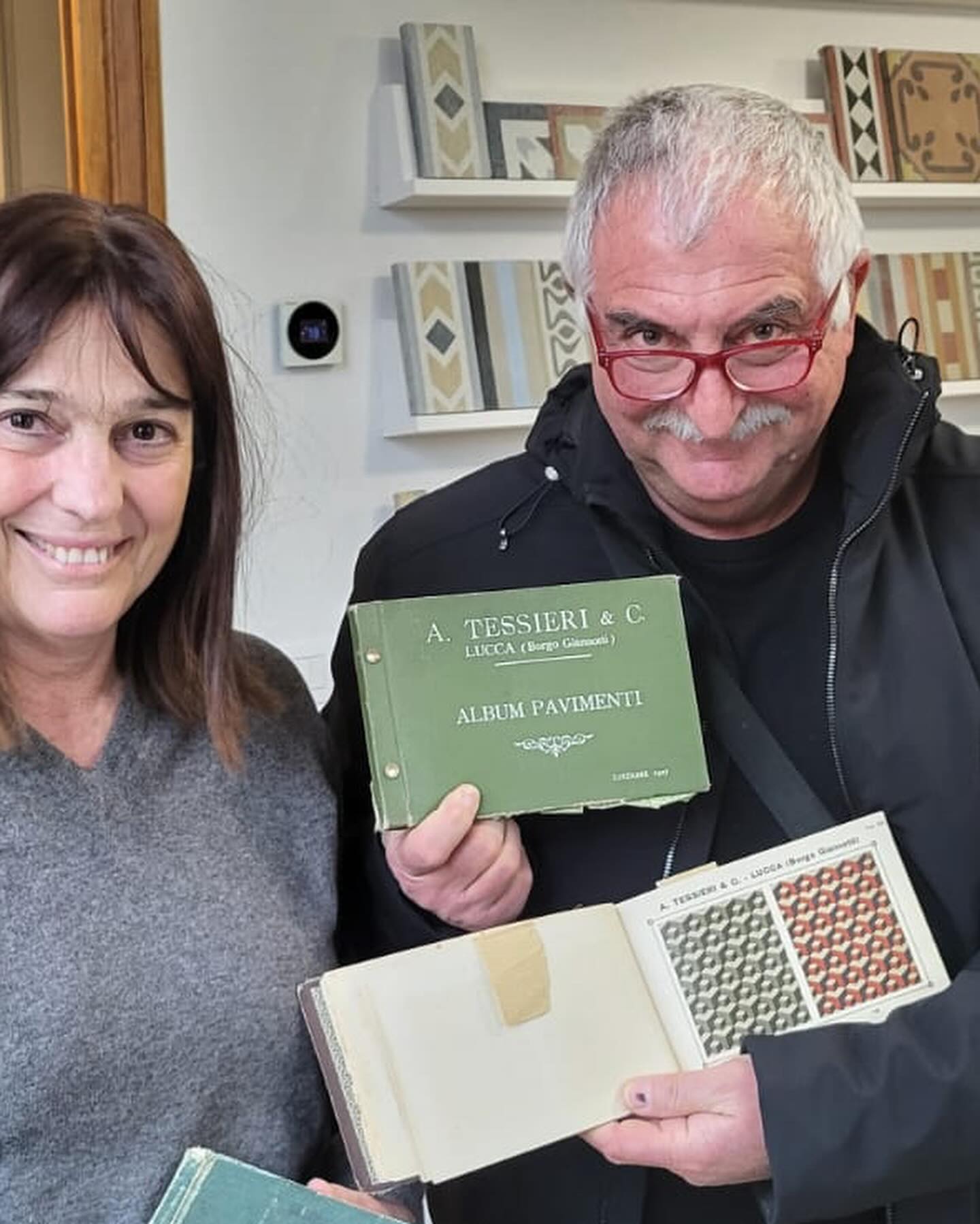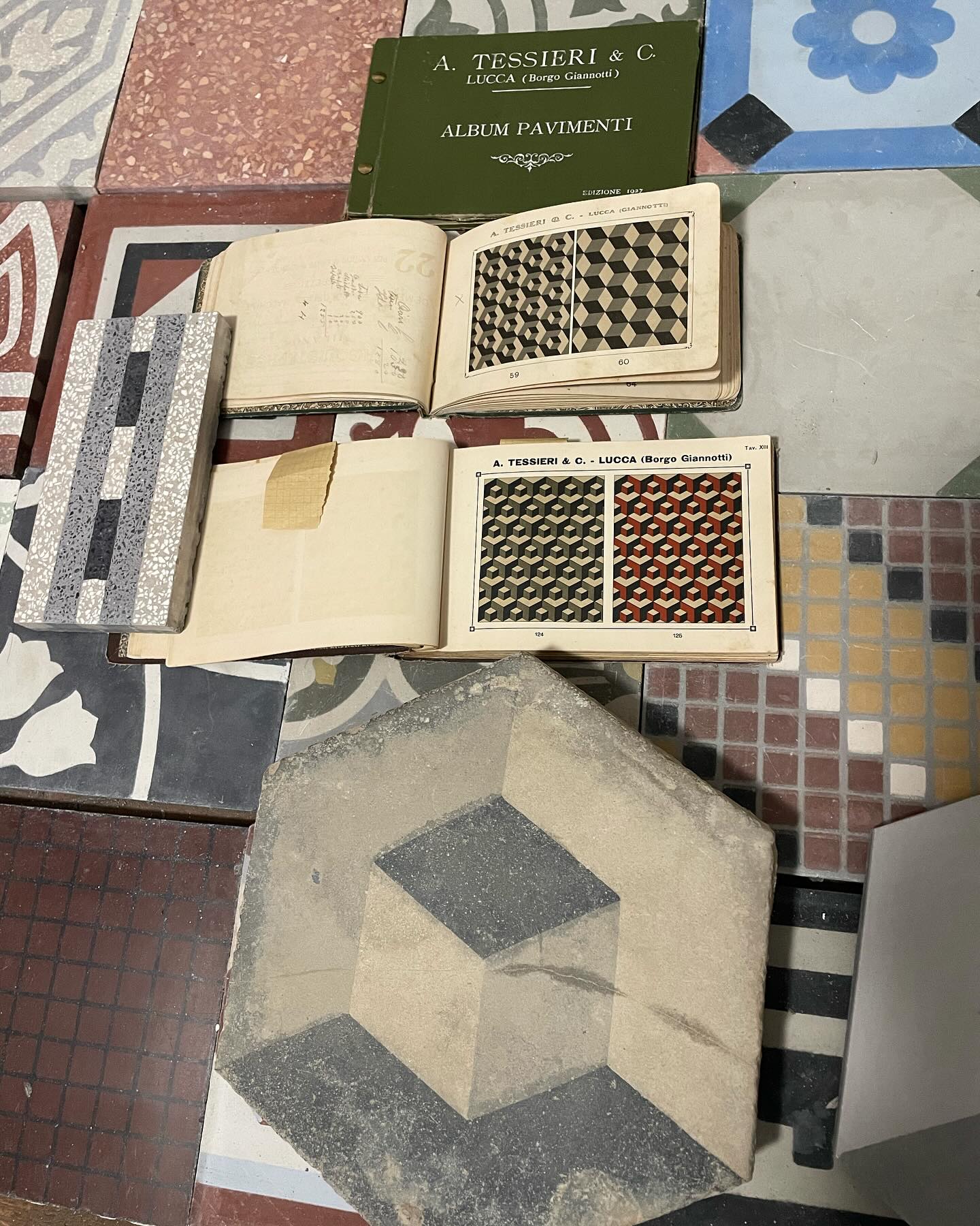 Oggi abbiamo avuto il privilegio di visitare questo luogo, accolti dalla Sig.ra Giuliana TESSIERI. La nostra missione era una: trovare una traccia del pavimento della villa. La Sig.ra Giuliana ci ha aperto gli archivi storici dell'azienda e, sfogliando i cataloghi (il primo datato 1904), abbiamo trovato la prova che cercavamo: l'esagono tridimensionale, identico per misura (25 cm) e schema di colorazione a quello posato a Villa Rodocanacchi.