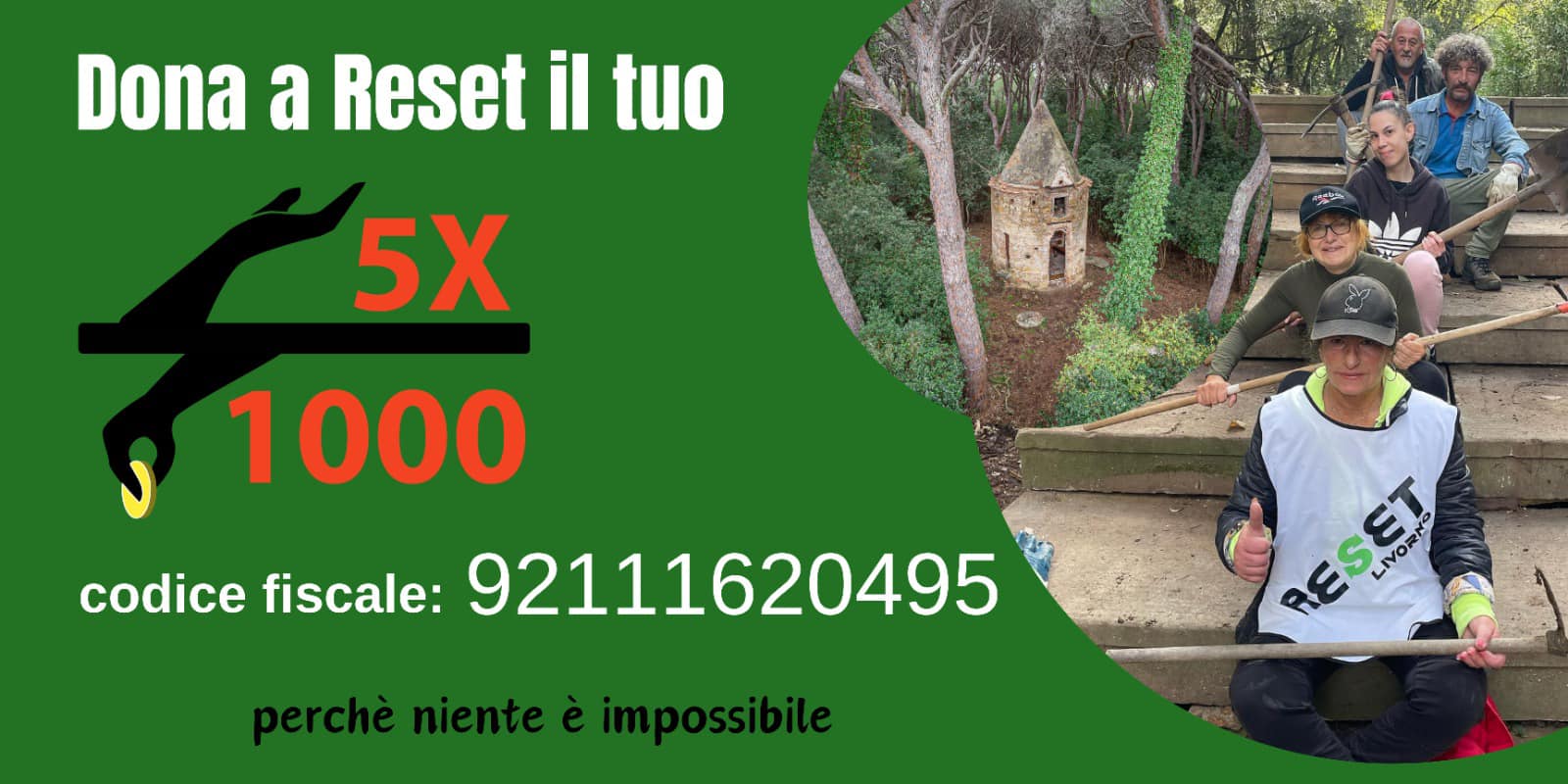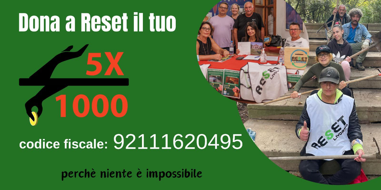 L'occasione è propizia per ricordare a tutti i cittadini uno strumento semplice e gratuito per aiutare Reset Livorno: la donazione del 5x1000. Sostenere l'associazione non costa nulla, ma è di vitale importanza per la sua sopravvivenza e operatività.