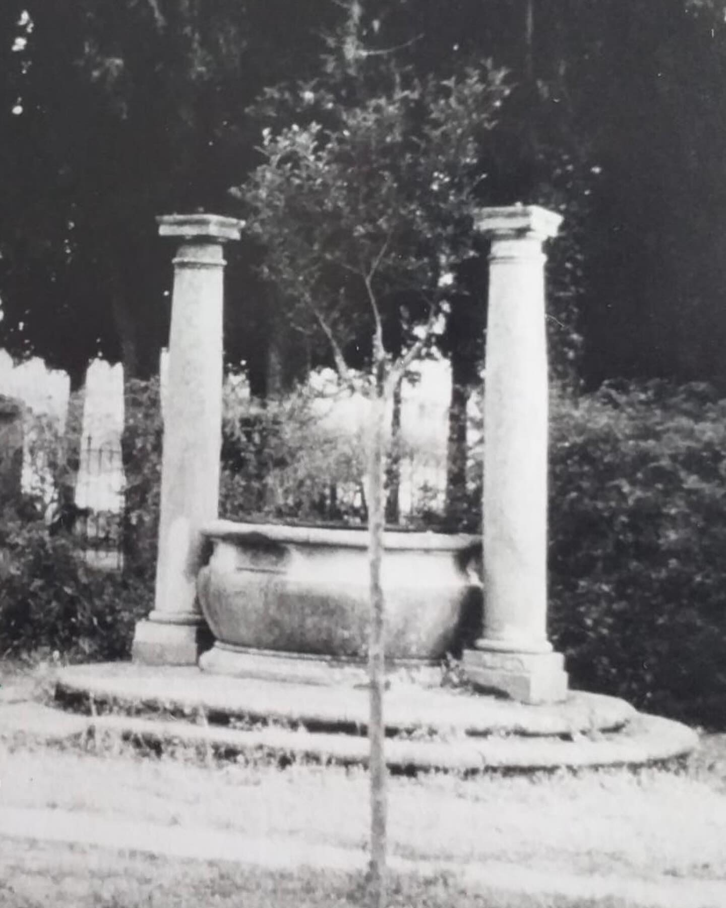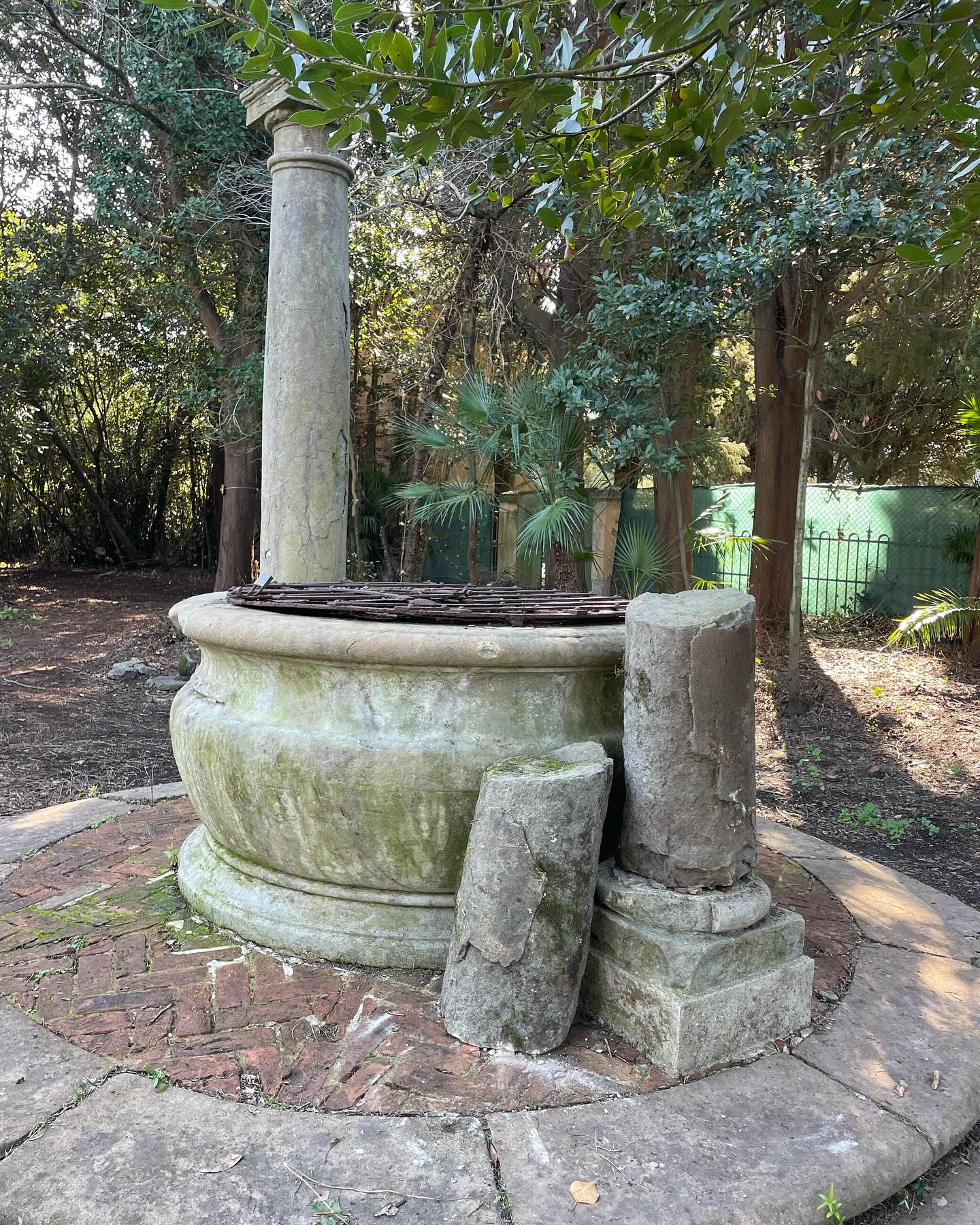 Accanto al pozzo, o forse come parte di un'antica struttura connessa, è stata ritrovata una colonna. Nelle ville neoclassiche ed eclettiche del XIX secolo, le colonne erano simboli di grandezza e raffinatezza. Potrebbe essere stata parte di un tempietto, di un'edicola, di un pergolato o anche un elemento isolato che fungeva da punto focale nel giardino. La sua presenza sottolinea l'attenzione al dettaglio e il gusto classico che permeava la progettazione del parco e della villa.
