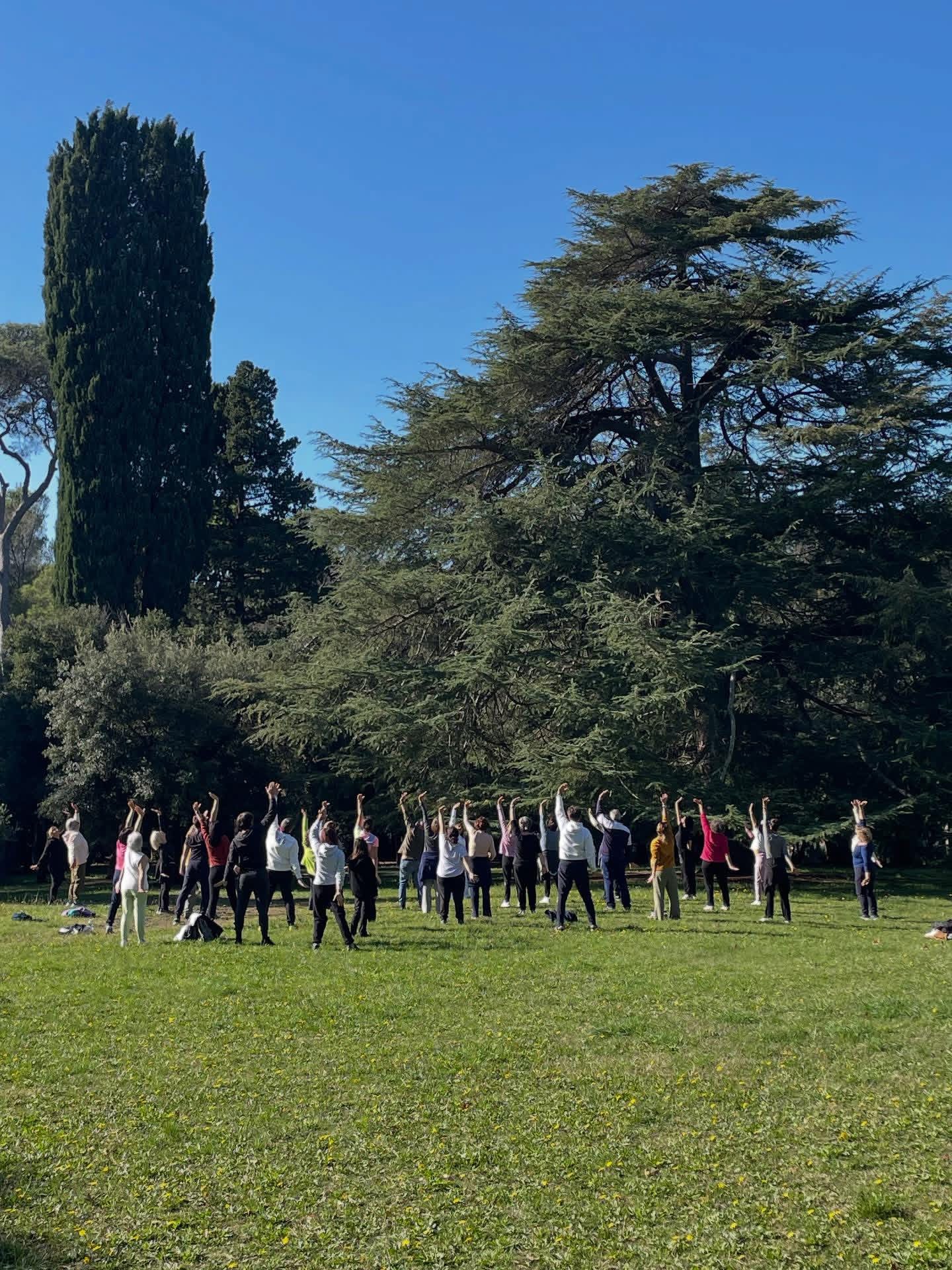 La location si è rivelata un valore aggiunto: la lezione si è svolta sotto il maestoso Cedro del Libano che domina il parco. Come sottolineato dagli organizzatori, l'antico albero ha metaforicamente "abbracciato" tutti i praticanti, creando una connessione unica tra la disciplina e la natura circostante.